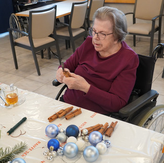 Wie jedes Jahr werden Adventskränze mit unseren Bewohnern gebunden. Jeder der Teilnehmenden hatte alle Hände voll zu tun.