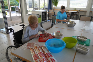 Unsere Bewohner hatten mit Messer Brett und Schüssel viel zu tun.