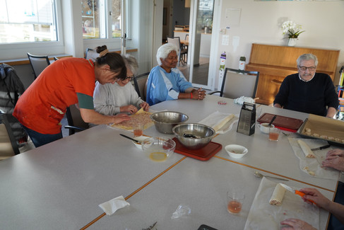 Am Mittwoch war im Wintergarten wieder einmal viel Betrieb. Es wurde tüchtig gearbeitet. Feine Aperogebäck wurden zubereitet und gebacken.