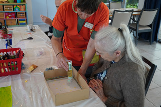 Immer am Montag im Werken, wird geschnitten, geklebt, gemalt und so weiter. Verschiedene Techniken werden angewendet, so dass es für unsere Bewohner möglich ist mit zu Helfen. Unsere Bewohner legen viel Liebe und Energie in die getane Arbeit.