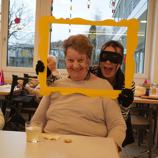 Am Nachmittag sorgte das engagierte Eichireben-Team wieder für beste Unterhaltung. Zu bekannten Fastnachtsschlagern spielten wir verschiedene Spiele, machten lustige Fotos und tanzten gemeinsam mit den Bewohnern. Die fröliche Stimmung war überall zu spüren! Besuch bekamen wir auch noch und zwar vom Marcel un Saxi die den Fasnachtsmontag verschönert haben!