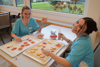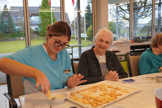Am Montag den 2. Dezember verwandelte sich der Wintergarten im Eichireben zu einer Weihnachtsbäckerei. Es wurde ausgewallt, ausgestochen, geschnitten und zuletzt noch bestrichen und verziert. Natürlich wurde auch Teig genascht und die fertigen Guezli probiert. Mmmmm sehr fein. Jeder der anwesenden Teilnehmer hatte ein Lächeln auf dem Gesicht, einfach wunderbar.